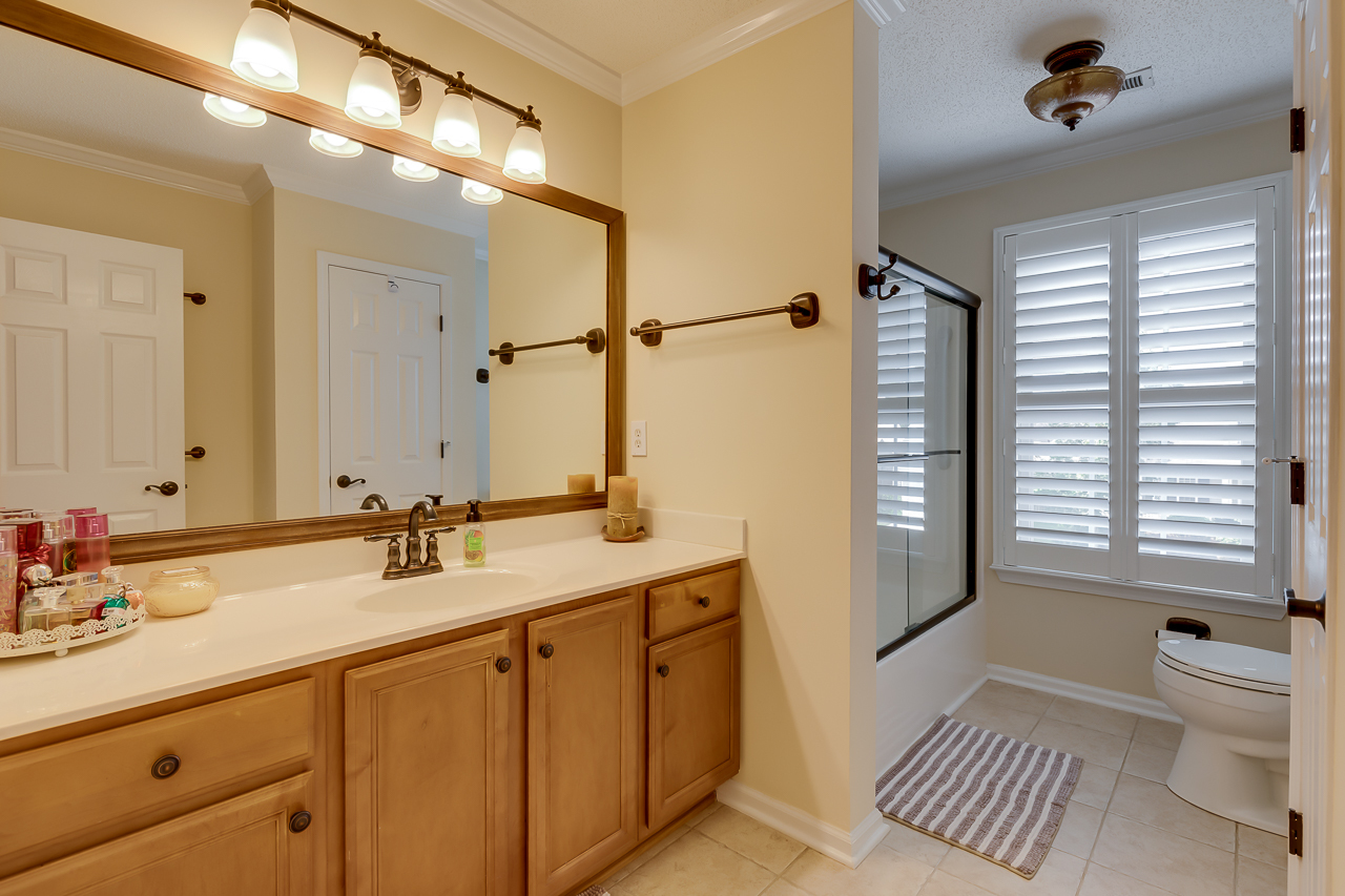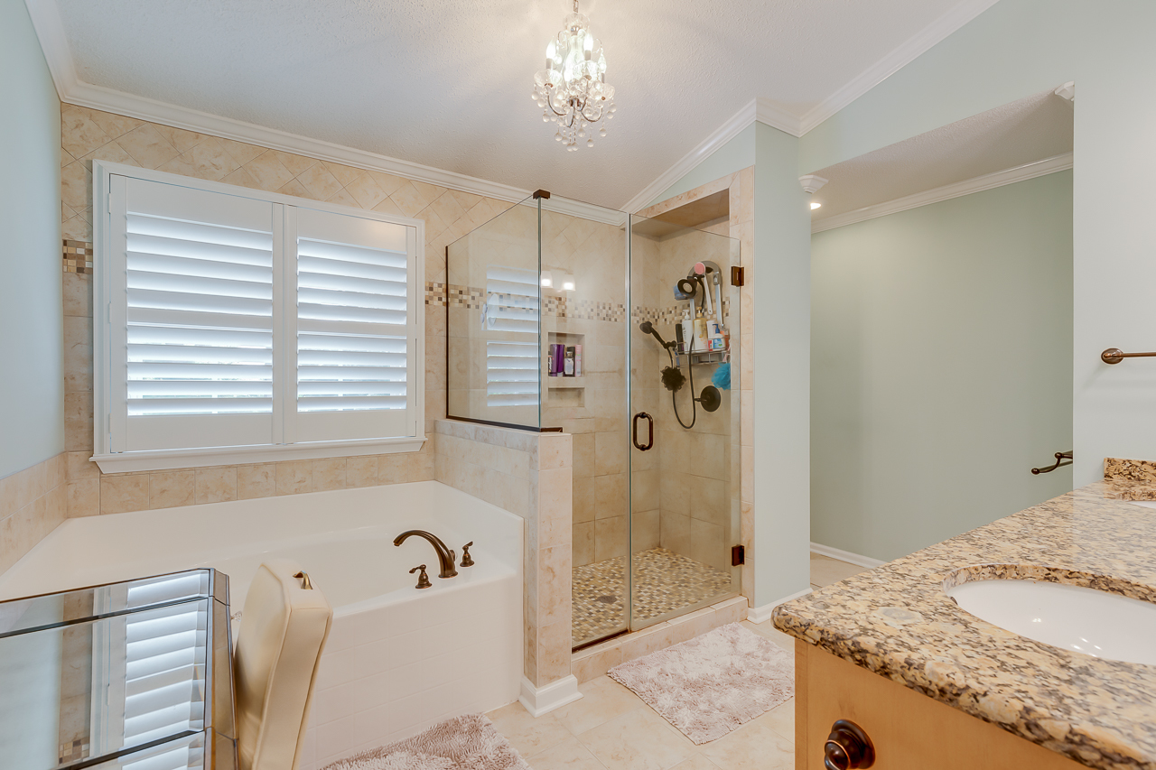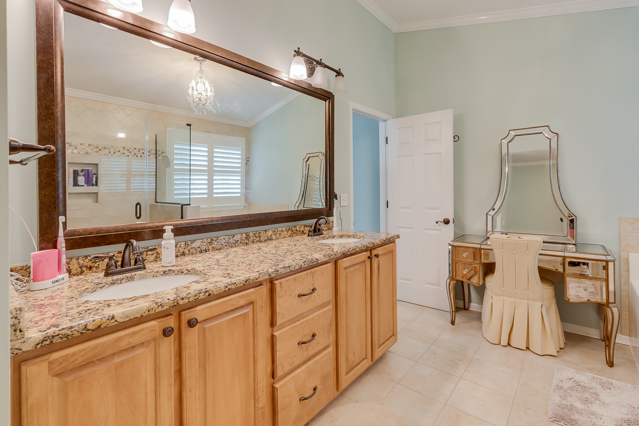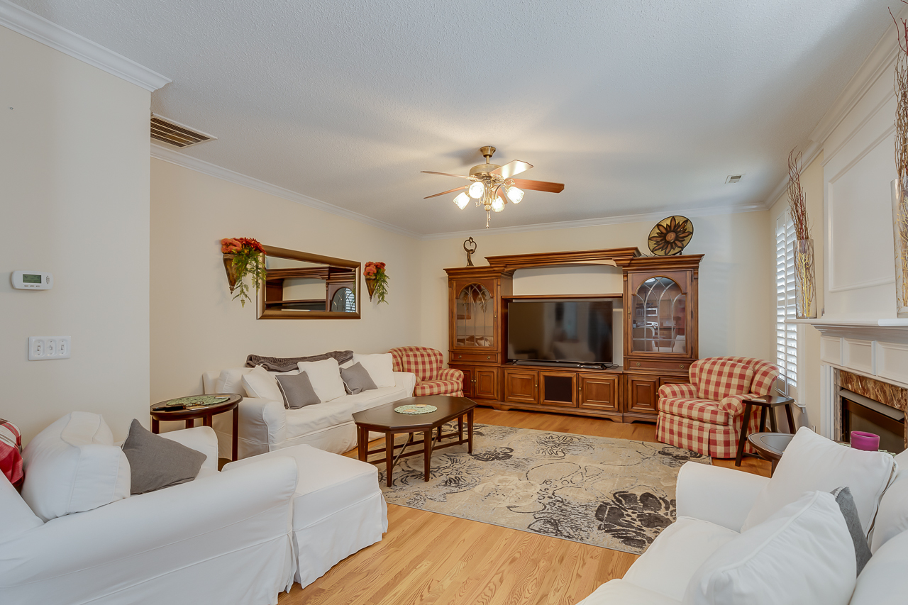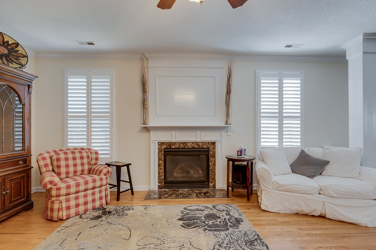 The open floor plan offers plenty of space that includes a large kitchen that features lots of cabinets, as well as ample counter space and a center island. Upstairs are 4 bedrooms, a large loft, and the laundry room. The master suite features a cozy sitting area, a custom designed closet, and a vanity with granite countertops. The shower is tiled as well as the surrounding walls of the large garden tub. Upgrades include iron railings on the porches, plantation shutters in all rooms, hardwood flooring throughout the main floor. Nice touches have been added such as, crown molding in all rooms, and a marble surrounded fireplace.